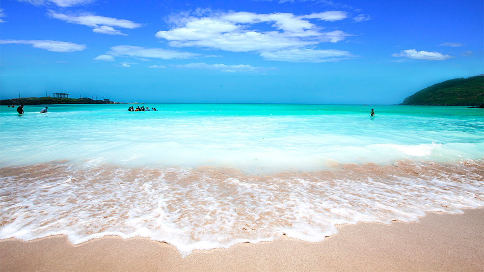 고운 백사장과 얕은 바다 속 패사층이 만들어내는 푸른빛 바다가 아름다운 해수욕장이다. 제주시에서 14㎞ 동쪽에 위치해 있고 시내버스도 자주 운행되어 관광객뿐 아니라 제주도민도 즐겨 찾는다. 경사도가 5° 정도로 아무리 걸어 들어가도 어른 허리에도 미치지 않을 만큼 수심이 얕아 가족 단위 피서객이 즐기기에 적당하고 검은 현무암과 아치형 다리, 바다로 이어지는 산책 데크까지 갖추어져 있어 제주의 푸른 바다를 관망하기에도 그만이다.